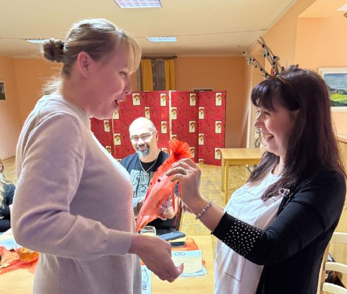 Každý herec a herečka dostal od vedoucí souboru dárečky, PF Smajlíku s fotkou