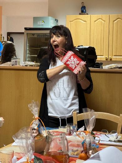 Rozdali jsme si dárečky a úžasně klábosili u vínečka a dobrůtek.