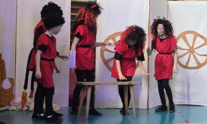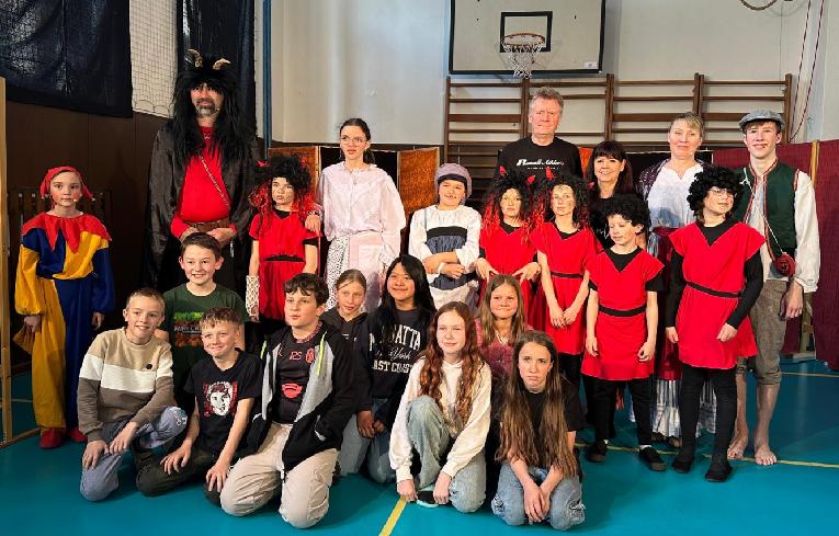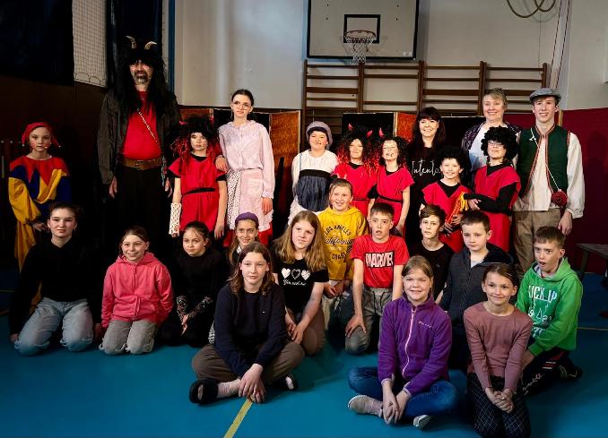 Takové a podobné věty zaznívaly od našich dětských herců před uvedením pohádky Kašpárkovy čertoviny v peckovské škole. Vše jsme nainstalovali a připravili den předem, protože děti z Mateřské školy a všechny děti ze Základní školy se na nás přišly podívat už v 9,30 hod.